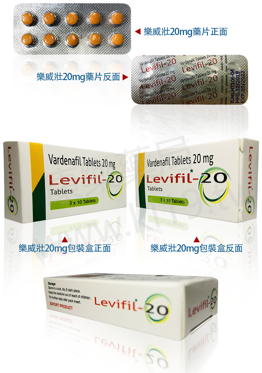 印度樂威壯學名藥Levifil-20,是印度 Fortune Healthcare 製藥公司研發生產,其主成分伐地那非(Vardenafil)一款經臨床驗證有效的勃起功能障礙(ED)治療藥物,具有酒精影響低、起效快(最快15分鐘起效)、副作用小、糖尿病患者可使用等特點。每顆藥片含有 20mg 伐地那非,能有效促進陰莖血流,幫助男性達到理想的勃起狀態。