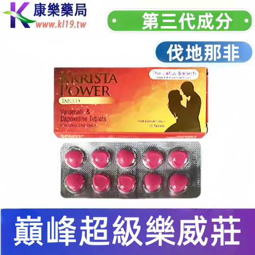 Krrista Power 巔峰版雙效樂威壯 是印度 Lotus Biotech 研發生產的強效男性性功能改善藥物,結合 伐地那非(Vardenafil)40mg + 達泊西汀(Dapoxetine)60mg,同時解決 勃起功能障礙(ED) 和 早泄(PE) 問題。無需空腹服用,最快 15分鐘起效,藥效長達 8-12小時,副作用更低,安全性更高。